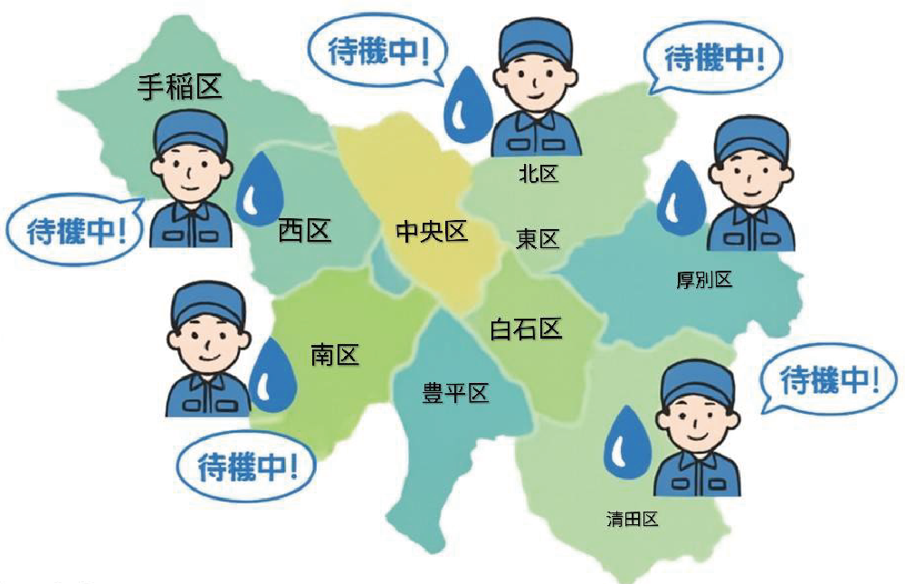 札幌での水道修理・水漏れ修理・トイレつまりなど水回りトラブルは、水道局指定の水道修繕センターが最短30分で駆けつけます。