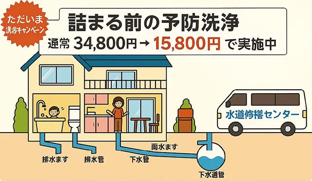 排水管のつまりや悪臭は高圧洗浄で解決!札幌市の水道修繕センターが内・屋外の排水管を丸ごと洗浄。明朗会計&水道局指定で安心。