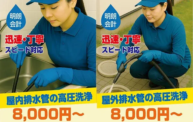 排水管高圧洗浄・排水管清掃・配管洗浄は9,000円~から対応。出張費・見積料・キャンセル料は無料です。